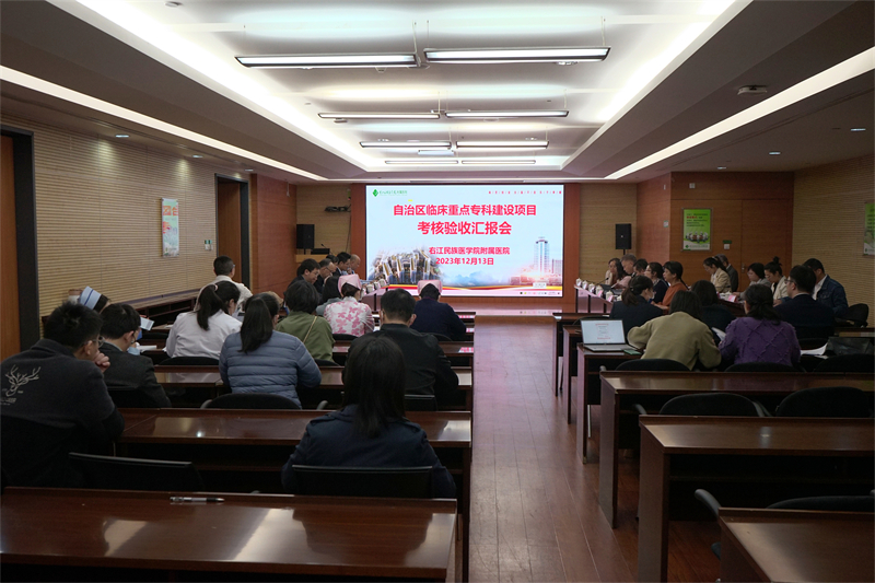 其后,专家组在我院4个自治区级临床重点专科建设项目前期自查自评、全面梳理总结的基础上,通过听取项目汇报、查阅资料台账和现场检查等形式,详细了解专科能力建设、资金使用情况、队伍建设、医疗服务能力与质量、教学和科研水平、技术辐射作用、建设自评情况以及科室在建设周期内取得的进步和成绩等,并就相关问题进行了深入的探讨和交流。