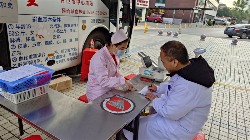 仪式结束后,我院在总院区外科综合大楼门前和百东院区献血屋,与百色市中心血站联合开展“医路有你 幸福万家”医务人员献血月无偿献血活动,动员组织全院(含总院区、百东院区)党员干部、医护人员开展自体输血和无偿献血活动,在百色市掀起了无偿献血的热潮。