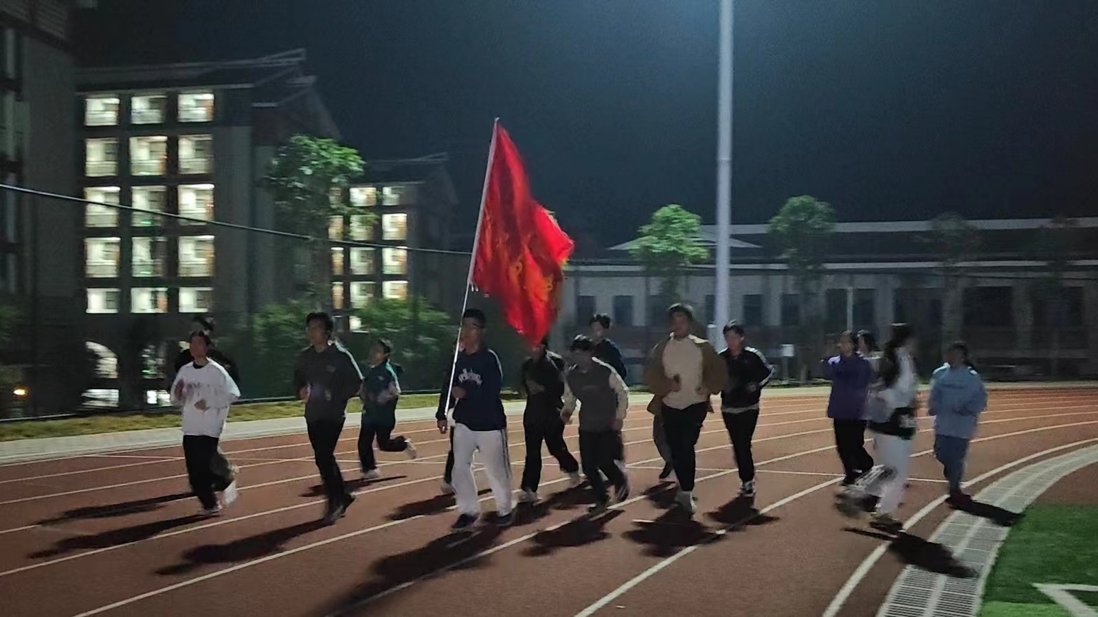 百东校区同学们在田径场上进行晨跑