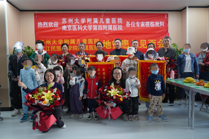 会后,苏州大学附属儿童医院、南京医科大学附属第四医院专家一行还实地考察了临床医学院(附属医院)造血干细胞移植病区,了解地贫患儿治疗情况及医院造血干细胞移植病区发展建设情况。医院造血干细胞移植病区还举行了地贫患儿见面会,众多造血干细胞移植成功的患儿及家长纷纷向苏州大学附属儿童医院胡绍燕教授专家团队赠送鲜花与锦旗表示感谢,感激苏州大学附属儿童医院与右医附院专家团队让自己的孩子迎来崭新的人生。活动现场气氛热烈,欢声笑语不断,家长们的感激之情溢于言表,孩子们的欢笑,大人们的幸福、感恩、欢乐与泪水相互交融,让现场呈现出一幕幕医患温情。