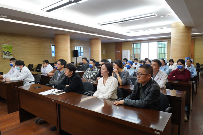 临床医学院(附属医院)党委书记林栩首先代表全院师生员工热烈欢迎苏州大学附属儿童医院王晓东院长、南京医科大学附属第四医院闻浩院长及各位专家莅临医院交流指导,并汇报了医院“一院两区”发展概况,对苏州大学附属儿童医院长期以来对右医附院造血干细胞移植团队和百色周边地贫患儿身心健康的辛勤付出和支持帮助表示衷心感谢。