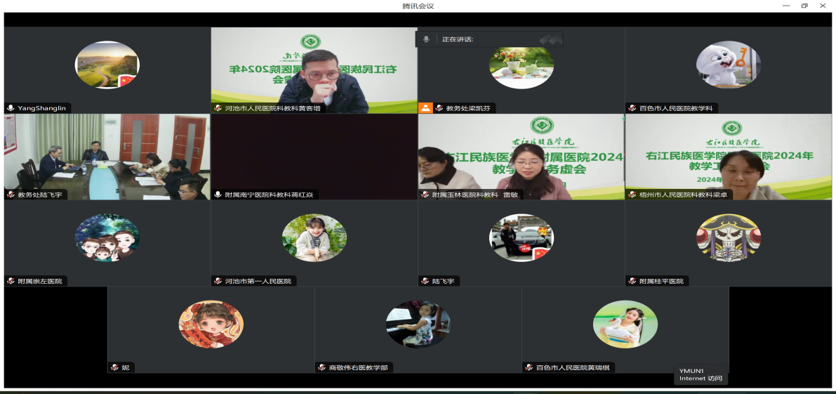 为全面总结鸭脖2023年附属医院临床教学工作和谋划2024年临床教学工作思路,1月12日下午,教务处通过腾讯会议组织召开2024年附属医院教学工作务虚会,教务处处长韦忠恒,各附属医院教学部(科)负责人和教务处实践教学管理科全体人员参加本次会议,共同聚焦“更大申博、争创实践教学同质化不断提升”目标,围绕2024年附属医院教学工作进行“头脑风暴”。会议由教务处副处长杨尚霖主持。