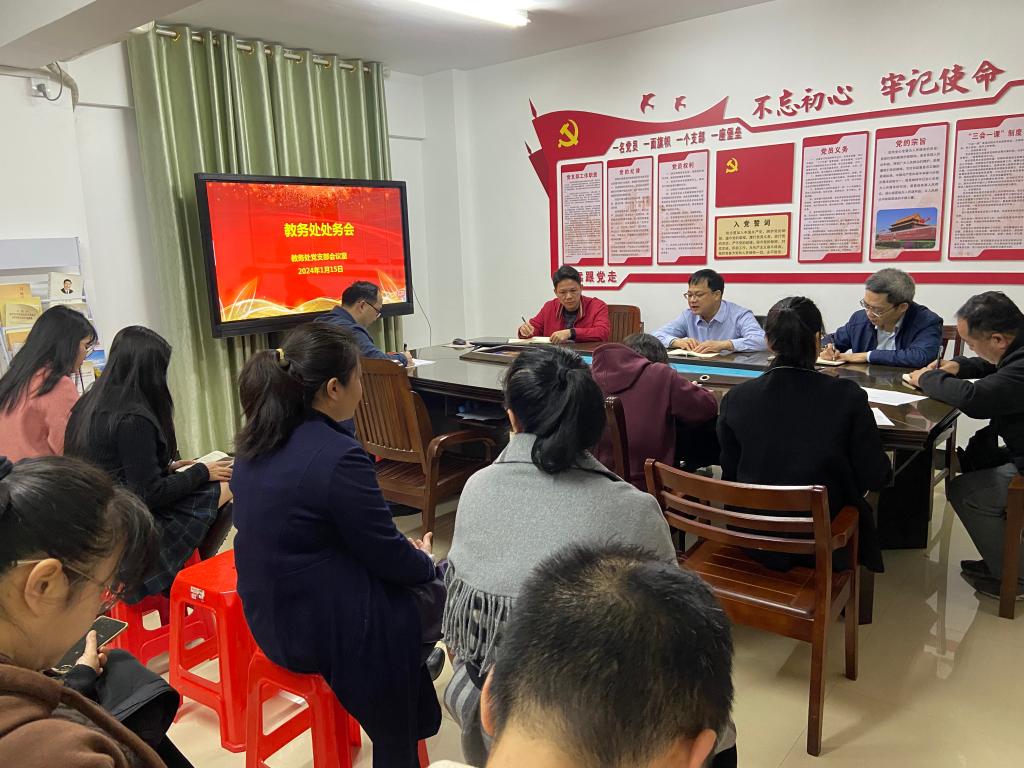 1月15日,教务处在教务处党支部会议室召开2023-2024学年秋季学期工作布置会。会议由韦忠恒处长主持,教务处全体人员参加了此次会议。