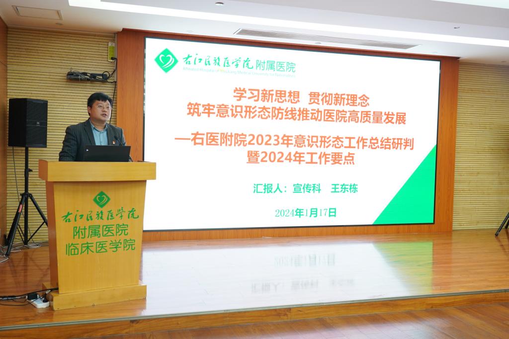 我院宣传科王东栋科长作《2023年意识形态工作总结暨2024年工作计划》专题报告