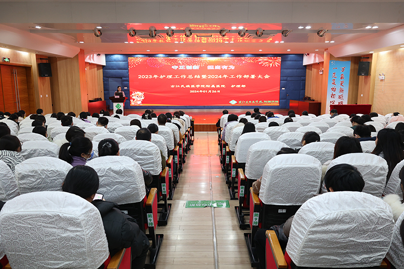 为总结年度护理工作经验、表彰先进和谋划未来护理学科发展,2024年1月26日晚,临床医学院(附属医院)在总院区学术报告厅召开2023年护理工作总结暨2024年工作部署大会,临床医学院(附属医院)党委林栩书记、韦忠恒院长、许靖副书记、梁楚晗纪委书记、邓益斌副院长、覃灵艳总会计师和全院行政职能职能部门负责人、临床科室主任、护长及护士代表等参加大会。