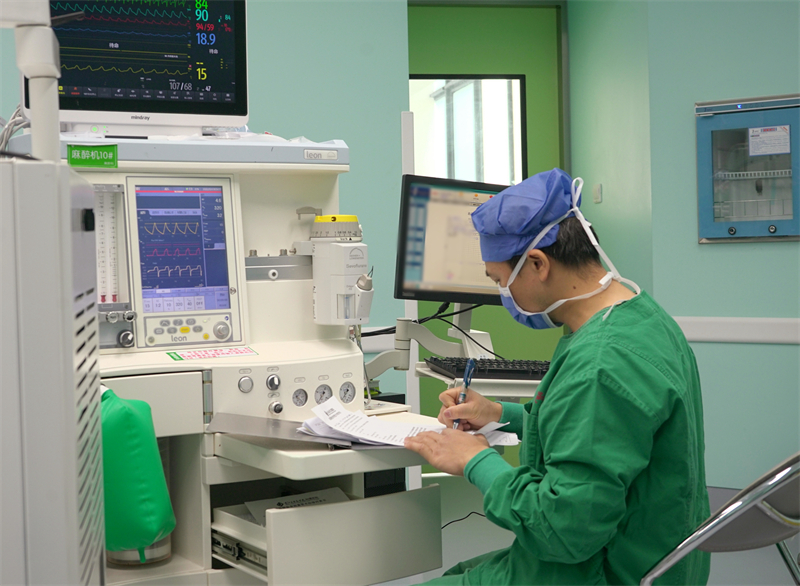 2024年2月20日上午医院手术室内,医护人员的脚步匆匆,穿梭忙碌在各个手术间,核对患者、扎针输液、麻醉插管、摆放体位、消毒铺床、器械传递、巡回观察……一切都在井然有序地进行着。当前,在强度大、手术量多的情况下,手术室、麻醉科医护人员常常从早晨八点开始工作,直到深夜凌晨才结束。他们时刻绷紧医疗质量、患者安全这根弦,高质量、高效率地配合主刀医生完成每台手术。