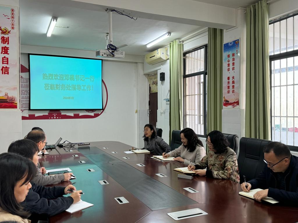 3月10日上午,邓砚书记、周艳娥副校长在党委办公室、组织部等部门负责人的陪同下到财务处开展调研,财务处处长陈军、副处长凌杰和各科室负责人参加调研会。
