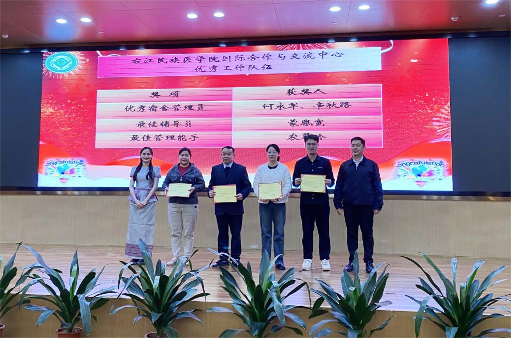 主持人以彬彬有礼、流畅自如的开场白拉开了大会的序幕。大会首先播放国际学生活动剪影,展示了鸭脖国际学生在学术、文体、社会实践等方面的突出表现,以及他们积极参与校园活动的风采。接下来,校领导和国交中心的老师们分别为近年来获得学校校长奖学金、优秀国际学生奖学金、教育部来华留学视频比赛、广西留学生汉字听写大赛、广西留学生网络书法比赛、广西留学生区情比赛、学校宿舍美化大赛、文明宿舍评比中取得佳绩的国际学生颁发了奖状,表彰他们在学业、科研、社会实践等方面的突出表现。同时,还嘉奖了在鸭脖来华留学教育工作中表现优异的教育工作者和宿舍管理员。