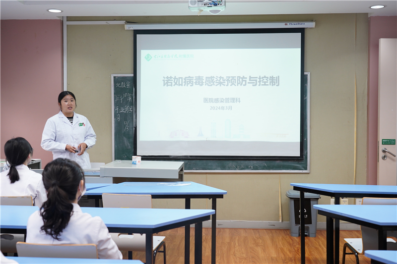 检查期间,检查工作人员现场对科室的标准预防、手卫生、卫生处置、医疗废物管理等进行现场检查,同时医院感染管理科还对总院区两个病区的医生进行了《诺如病毒感染预防与控制》专题培训,指导科室医务人员规范做好手卫生、环境消毒、如何做好病毒感染暴发应急处置等相关工作。