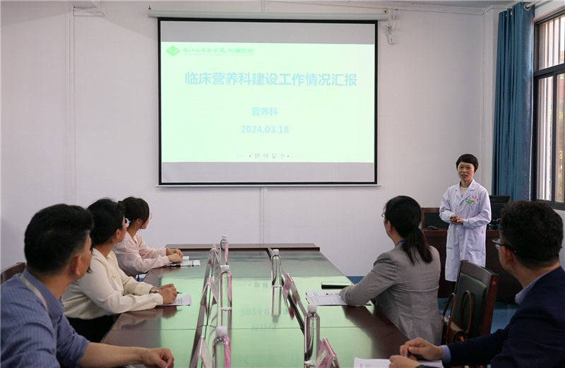 座谈会上,右医附院营养科侯双雁副主任医师还从营养科建设、肠内营养、医疗膳食、营养门诊、营养质控工作、院科两级诊疗等方面向专家组介绍了临床营养科的建设工作情况。