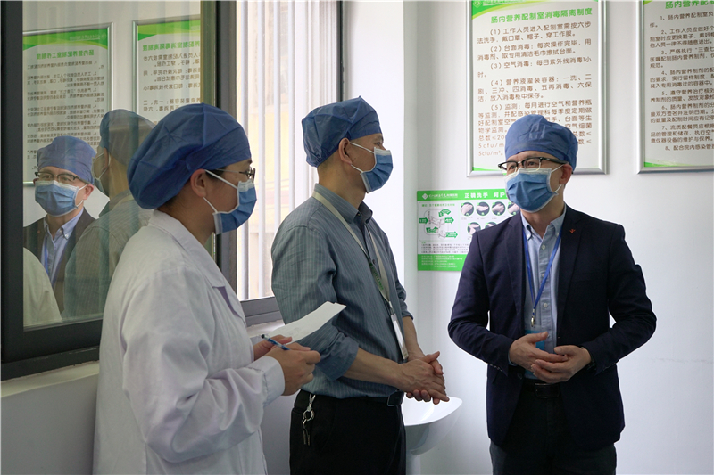 其后,督察组一行分组先后来到右医附院营养科办公室、医院肠内营养配置室、营养门诊、营养食堂等现场检查资料、肠内营养配制和营养膳食配餐工作情况,并从科室功能区划分、人员配置、设备规范配备、诊疗流程、营养专业质控中心管理与建设等方面进行了指导。