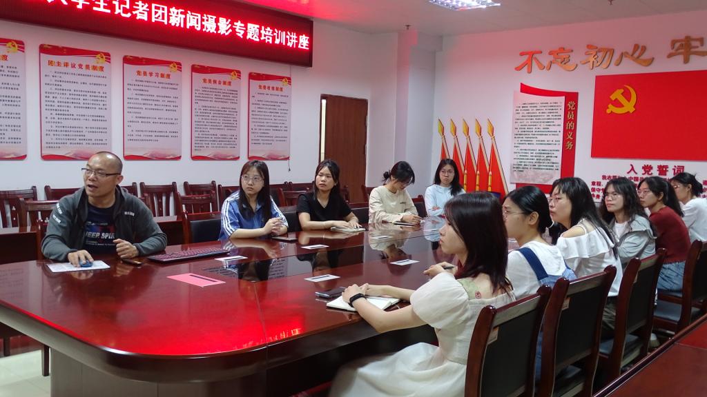 3月23日上午,国际语言文化教育学院在西区C栋党员活动室开展新闻摄影专题培训讲座。本次讲座由学校党委宣传部副部长黄宏春博士主讲,学院大学生记者团全体成员和其他社团部分成员聆听讲座。