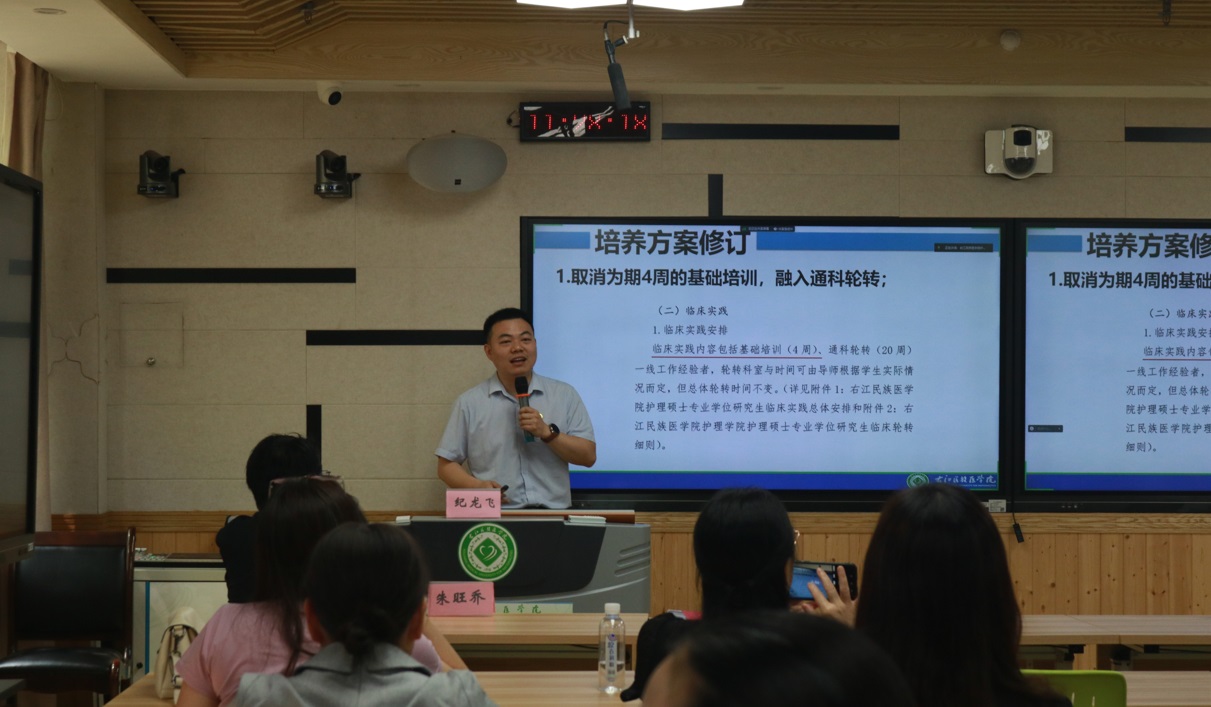 为了适应学位与研究生教育发展的需要,提升护理研究生导师的科研素质与能力、规范导师的指导行为,提高研究生培养质量,推动研究生教育的创新和发展,护理学院近日在百城校区7栋403智慧教室举办2024年硕士研究生导师培训班。本次培训班采取线上线下结合的方式开展,护理学院全体硕士研究生导师参与线下培训,护理学院本科生导师、全体专职教师、YABO鸭脖官网附属医院副高及以上职称及研究生临床指导教师在线上参与培训。