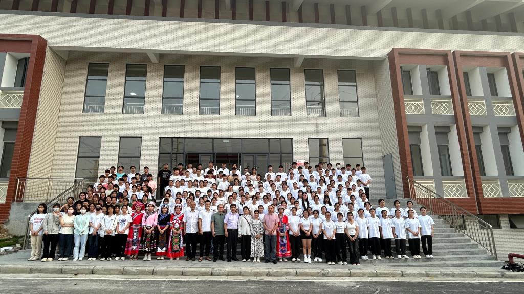为弘扬民族文化,丰富校园文化生活,促进民族团结,4月3日下午,我院在百东校区合一堂侧门举行了主题为“校歌大家一起唱,民族团结一家亲”的歌咏比赛,2023级共4个班参加此次比赛。本次比赛由陈秉朴书记、李振中副书记,以及学生科黄云晟、黄媛媛、姚巧云三位教师担任评委。