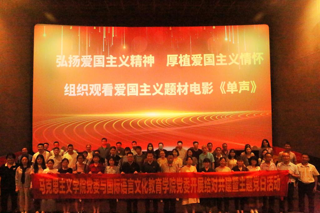 为深化民族团结进步教育,大力弘扬爱国主义精神,凝聚新时代爱国奋斗强大力量,4月3日下午,马克思主义学院党委与国际语言文化教育学院党委到百色市中山广场横店电影城开展结对共建暨观看爱国主义题材电影《单声》主题党日活动。