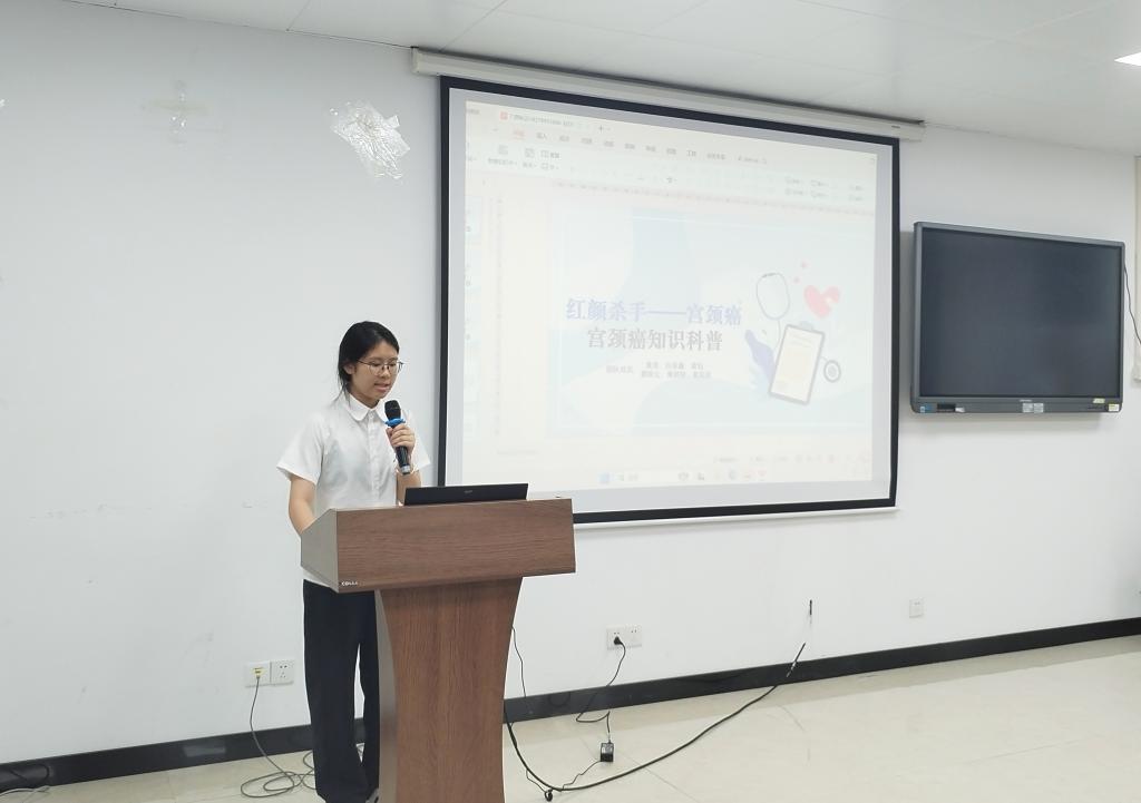 比赛现场,各团队围绕妇女儿童健康领域内容进行PPT展示。其中,高年级组第一个团队通过情景剧与唱山歌相结合的形式,以严谨的专业态度,昂扬的精神面貌,生动的现场演绎,向我们普及了地中海贫血的概念、危害、筛查、预防措施等方面内容,着重体现孕前优生健康检查和预防是预防地中海贫血的有效措施。低年级组其中一个团队则通过小课堂讲解的方式进行女性月经知识科普,讲述月经对女性的影响,生理期间的注意事项、痛经的影响等健康科普小知识。