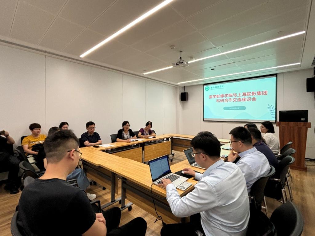 为进一步提升医学影像学院教师科研能力,有效推动学院对外合作项目开展,4月18日下午,医学影像学院与上海联影集团在核医学教研室办公室召开科研合作交流座谈会,医学影像学院党委李丹书记、联影智能研究院周庆博士、联影中央研究院周宁老师、放射医学教研室全体教师、核医学教研室和超声医学教研室硕士生导师团队成员等相关人员参加会议,会议由李丹书记主持。