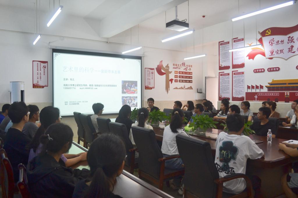 为提升医学生的医学人文素养,培养具有高尚情怀、创新精神、职业素养的高素质创新型医学人才,4月23日,基础医学院邀请海南大学艺术学院美术系主任、博士研究生导师、海南省东方文化研究院院长牧之教授做医学人文素质教育专题讲座。药学院院长韦贤教授出席讲座,基础医学院教师和学生代表共计40余人参加本次讲座,讲座由基础医学院院长黄衍强教授主持。
