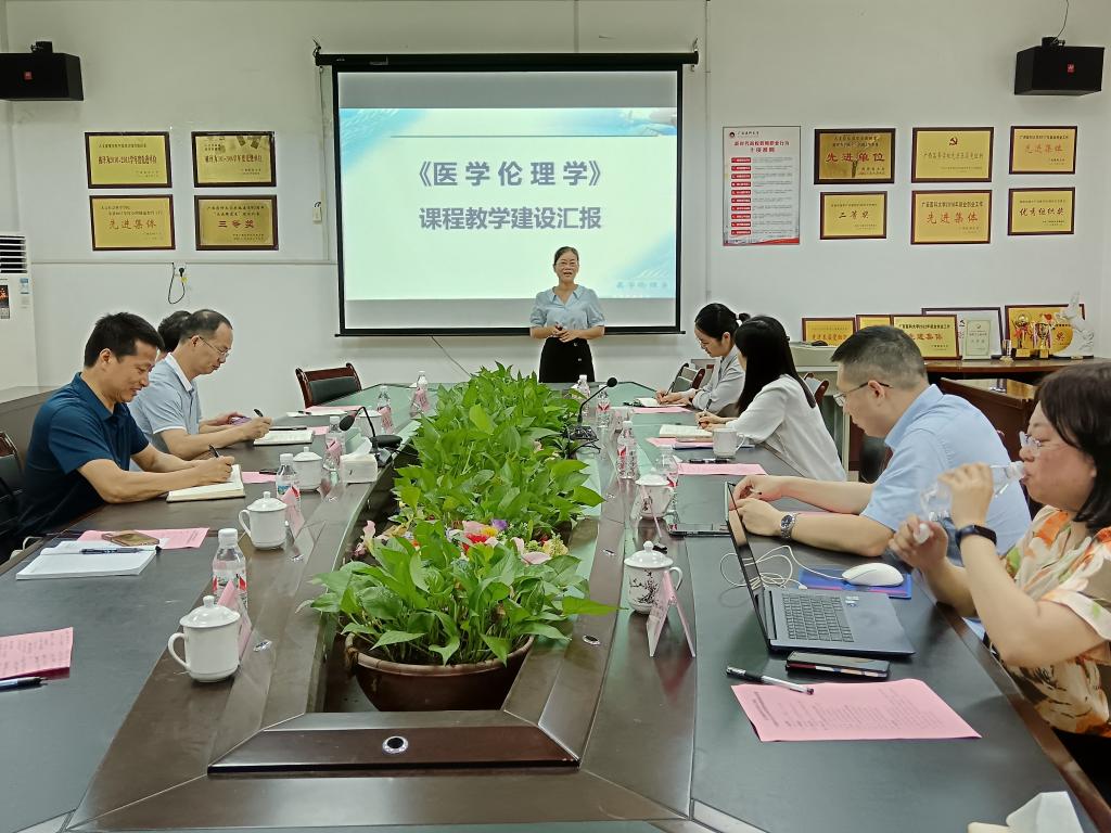 在交流展示环节,先由广西医科大学人文社会科学学院杨小钵博士就《医学伦理学》课程建设、党建引领学科建设、教学科研发展、教研室建设等方面进行全方位介绍。接着,韦宇宁老师围绕《医患沟通学》课程的一流课程建设、课程思政建设和虚拟教研室建设等各方面的思路做法向大家详细介绍。随后,鸭脖马克思主义学院张琴老师围绕《医学伦理学》课程的建设为对方进行了介绍。双方聚焦《医学伦理学》和《医患沟通学》两门课程,从专题内容设计、课堂教学模式改革、实践教学等方面进行深入交流研讨。双方就今后基层教学组织建设、项目申报、学科建设以及教育教学审核评估等多方面的合作达成意向。