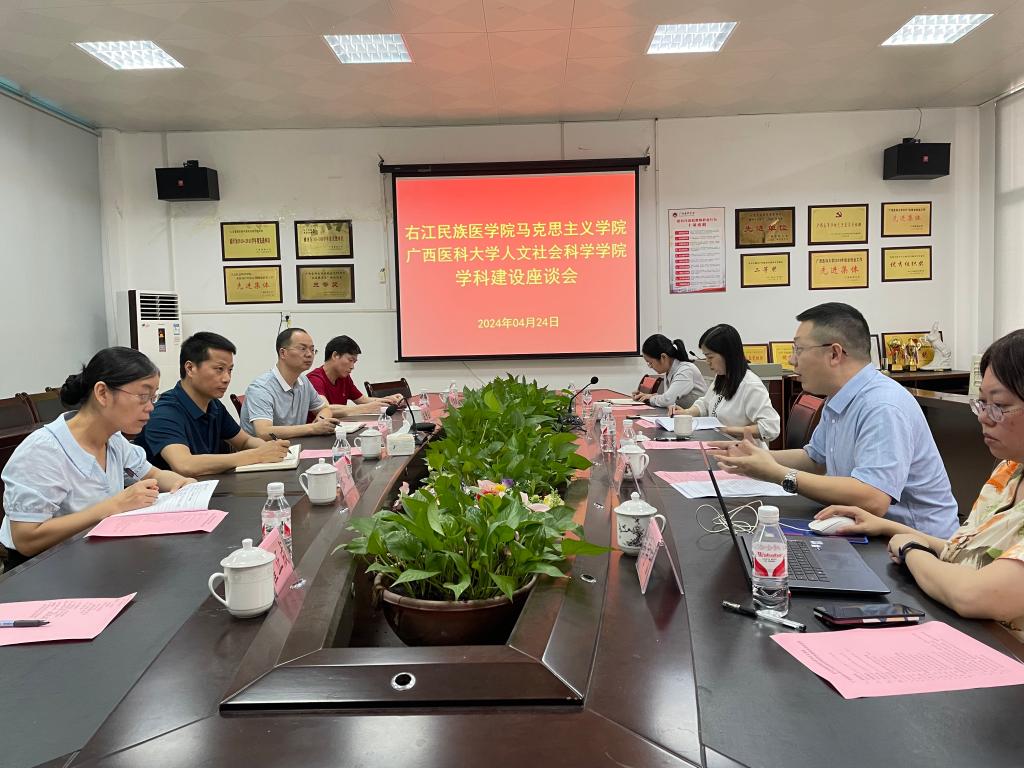 为加强学校医学人文学科建设,不断推进马克思主义学院高质量发展。4月24日下午,马克思主义学院党委书记、院长许世华带队赴广西医科大学人文社会科学学院开展学科建设交流活动,学院副院长左伟尘、医学伦理学教研室负责人张琴以及教研室骨干教师代表等4人随访。