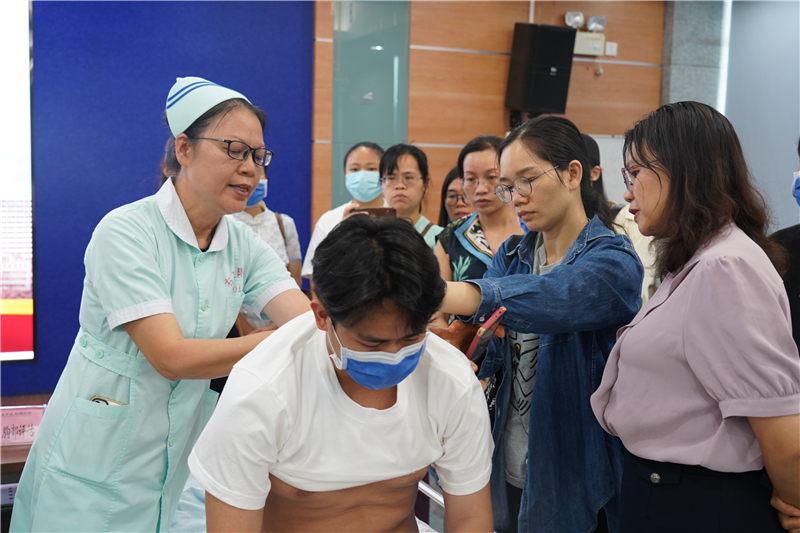 右医附院农彩梅大护士长指导参会人员进行胸部的健康评估