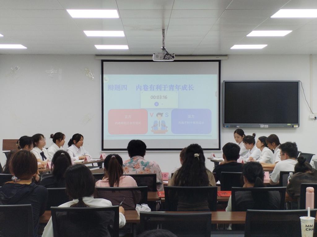 在决赛阶段,晋级队以小组为单位分别围绕“课堂应由学生做主”、“内卷有利于青年成长”等五个辩题展开激烈辩论。各晋级队伍旁征博引,乘风破浪,气势如虹,在自由辩论环节中比赛气氛再次推向高潮,现场气氛迅速升温,精彩连连。最后,在观众阵阵掌声中,本次辩论赛到此结束。
