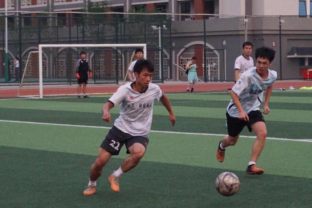 下半场为男足比赛。公卫检验联队男足队员们对基础医学院男足一队发起猛烈进攻。比赛中,公卫检验联队男足55号队员农灿鹏和15号队员奚彰焕为球队各进一球,并将比分保持到终场。