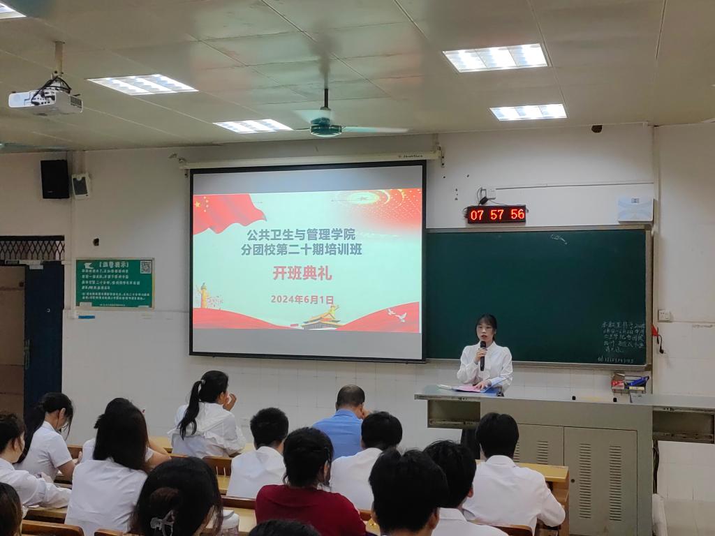 6月1日上午8:00,公共卫生与管理学院在6栋201教室举办第二十期分团校培训开班仪式。参加本次分团校培训的学员共有125人,该院党委书记李常应出席开班仪式。