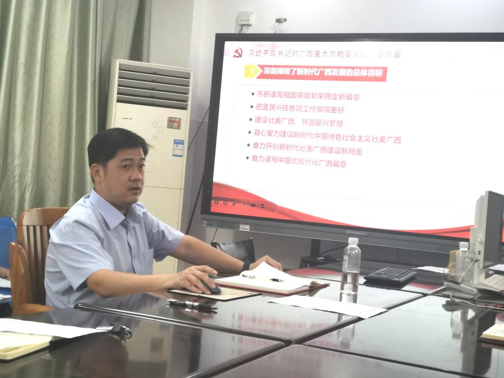 学校党委常委、副校长黄龙坚以《深入学习贯彻习近平总书记关于广西工作论述的重要要求》为题,围绕习近平总书记对广西的深情关怀与殷切嘱托、习近平总书记关于广西工作论述的重要要求的主要内涵、自治区党委对深入贯彻落实习近平总书记关于广西工作论述的重要要求的系列部署、学校党委对深入贯彻落实习近平总书记关于广西工作论述的重要要求的系列部署四个方面展开,为支部全体党员上了一节生动的专题党课。