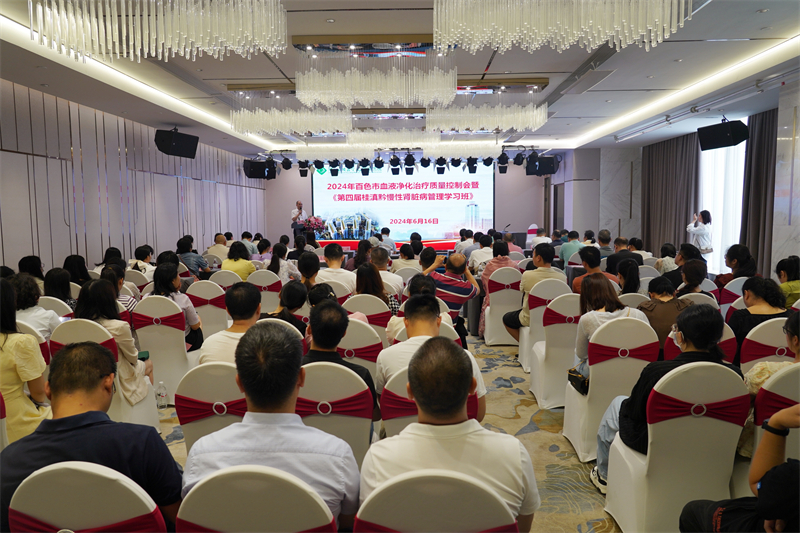 2024年6月16日,我院在百色城举办2024年百色市血液净化治疗质量控制会暨自治区级继续医学教育项目《第四届桂滇黔慢性肾脏病管理学习班》,百色市卫健委副主任、市中医药管理局局长张军出席开班仪式并讲话,右医附院党委书记林栩教授出席开班仪式并致辞,百色市医学会肾脏病学分会全体成员、百色市血液净化治疗质量控制中心全体委员和来自区内外各医院从事肾脏病、血液净化治疗的相关专业医务人员参加学习培训。百色市血液净化治疗质量控制中心主任、右医附院肾内科主任王洁教授主持会议。