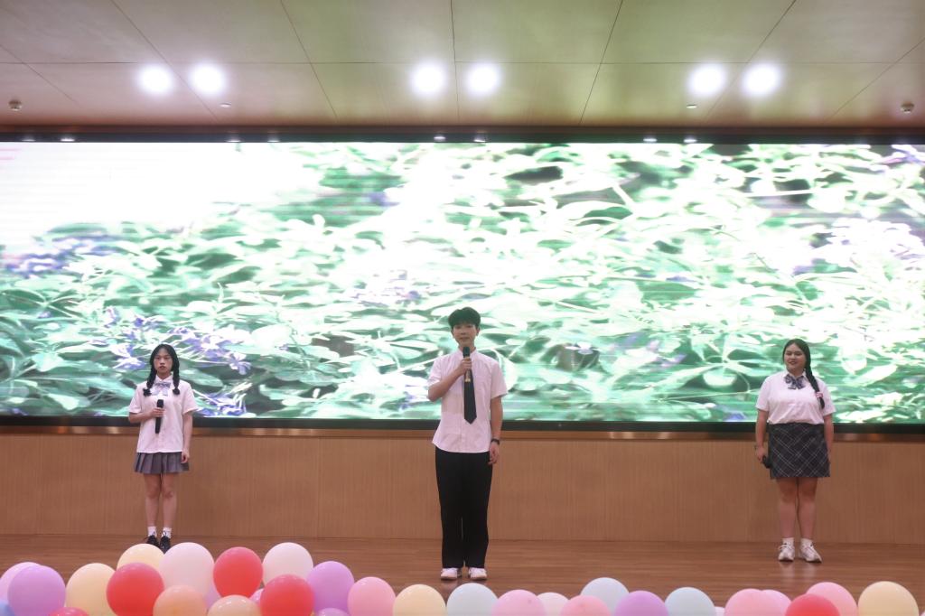 接下来,是由艺术团、学校街舞社及学生科辅导员李森森老师带来的街舞表演《Sugar》。灯光下,他们的影子随着音乐的节奏跳跃,为观众呈现了一场视觉与听觉的盛宴。毕业班学生代表黄琪琪、黄丽洁、岑飞为大家带来了一首动听的歌曲——《夏天》。她们的歌声就像这首歌的旋律一样温馨而富有夏日氛围,充满青春的气息。